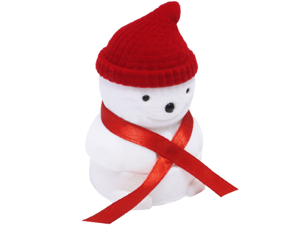 - Atypická zamatová darčeková krabička v tvare snehuliaka s bielym saténom vnútri viečka.