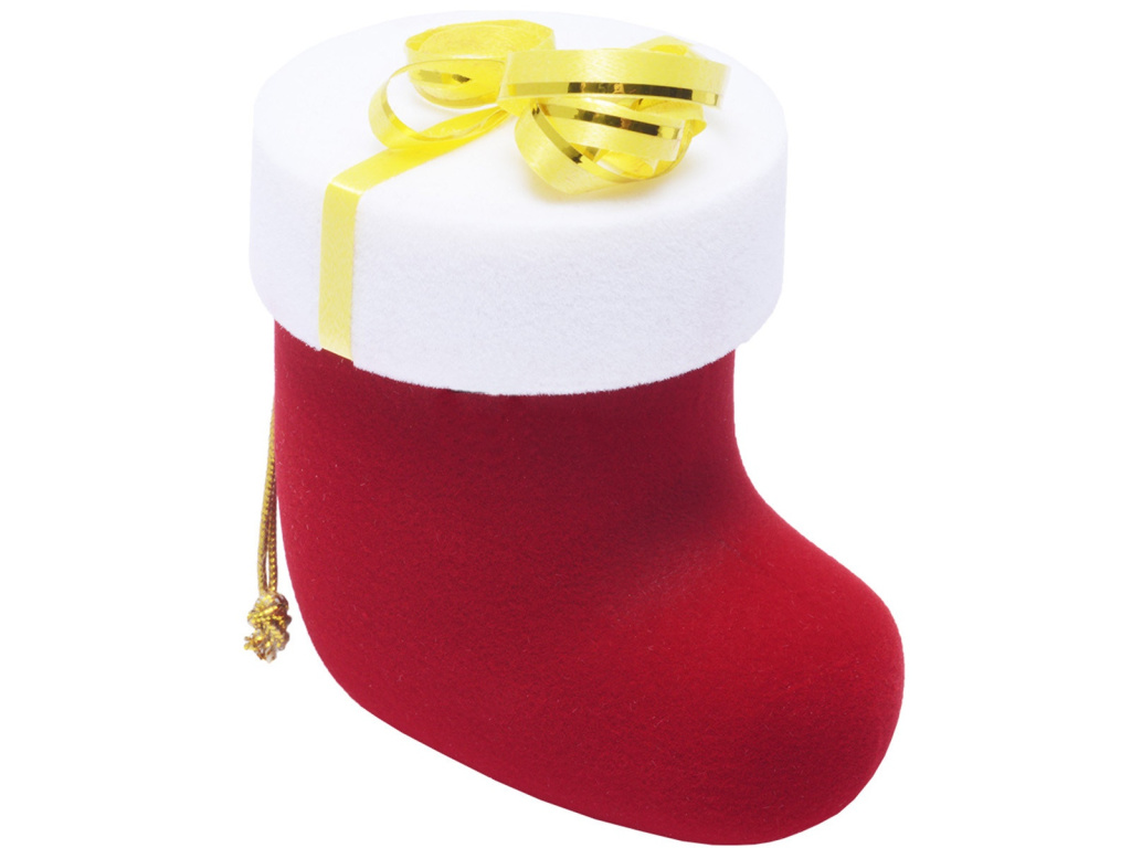 - Atypická zamatová darčeková krabička v tvare pančuchy s bielym saténom vnútri viečka.