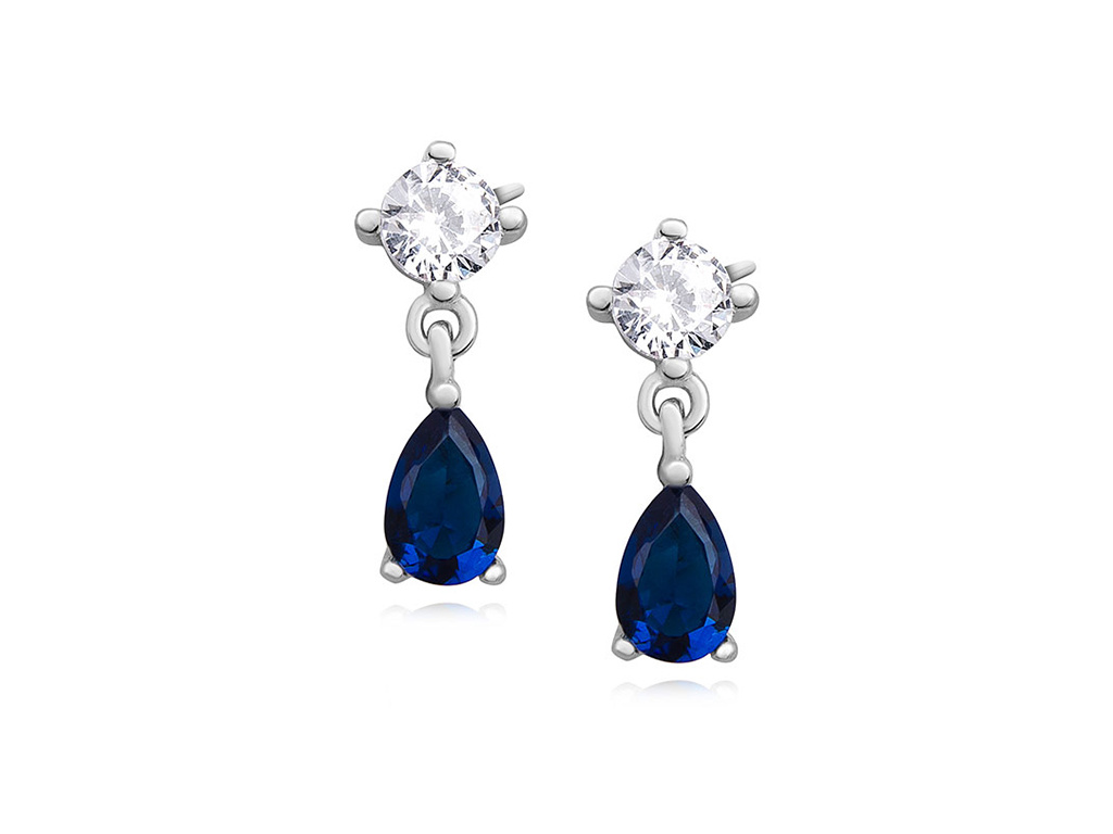 0754 Strieborné náušnice so zafírovým zirkónom Ag 925; ≤1,5 g.