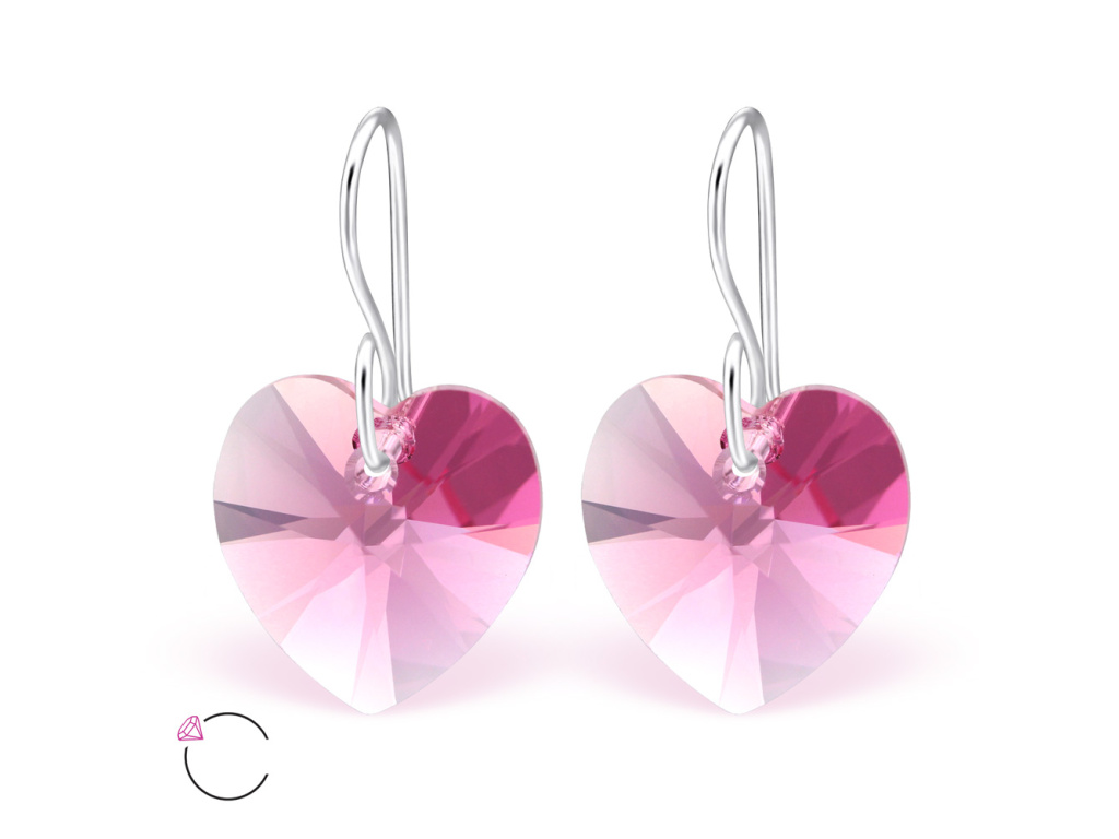 0813 Strieborné náušnice Swarovski SRDCE ROSE Ag 925; ≤0,35 g.