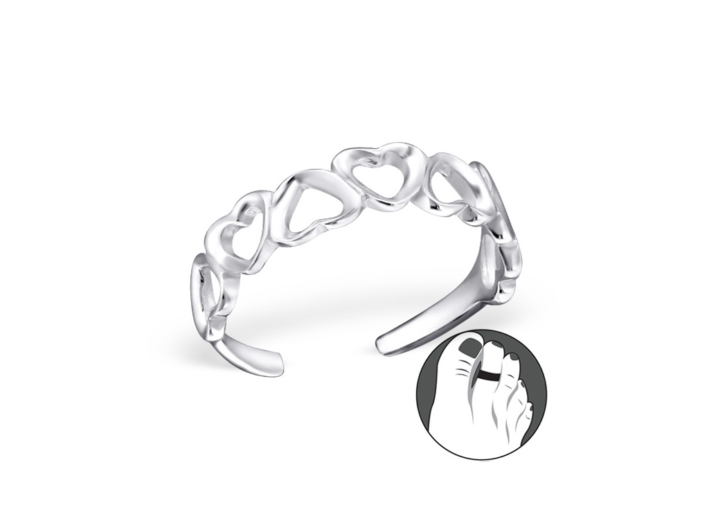 1225 Strieborný srdiečkový prsteň na nohu Ag 925; ≤0,73 g.
