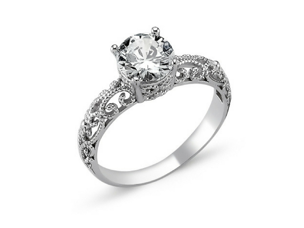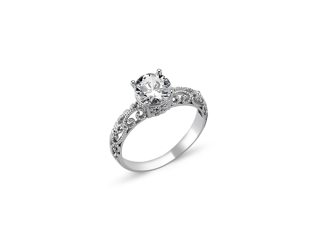 Strieborný solitérny prsteň s čírym kubickým zirkónom.