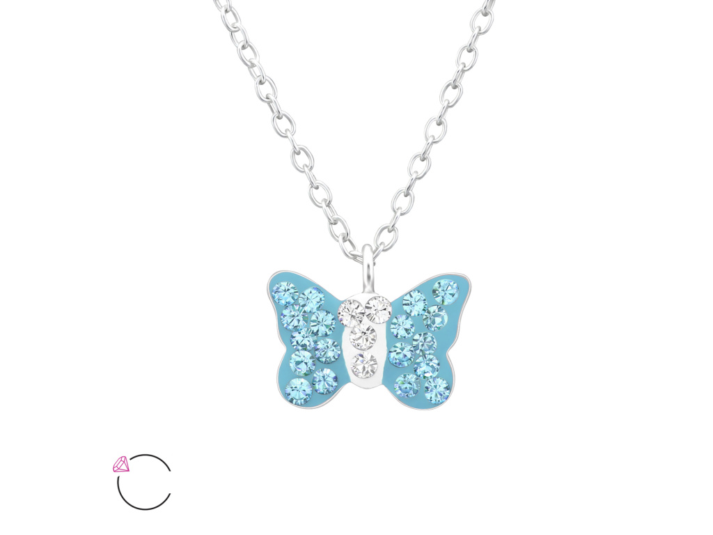 DĚTSKÝ STŘÍBRNÝ ŘETÍZEK MOTÝL AQUA SWAROVSKI