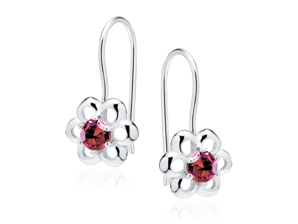 1627 Detské strieborné náušnice KVÍTEK RUBY Ag 925; ≤1,1 g.