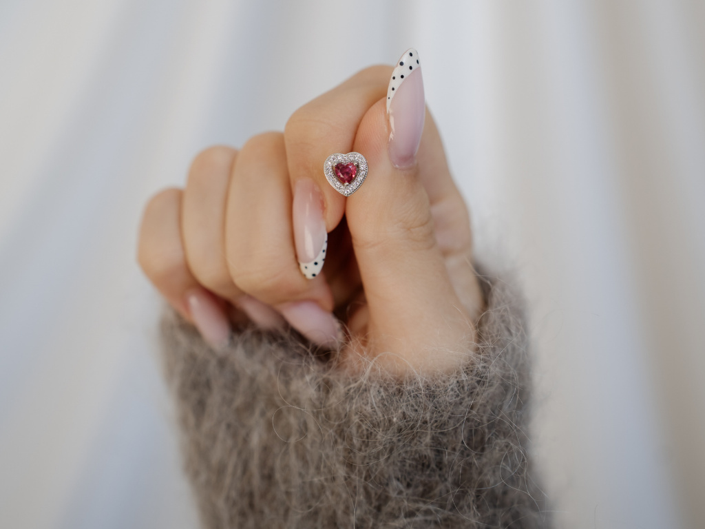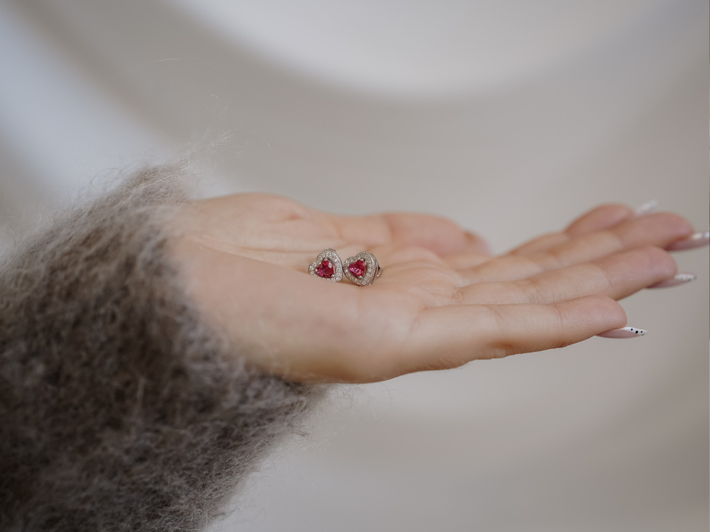 Trblietavé náušnice s červeným srdiečkom.