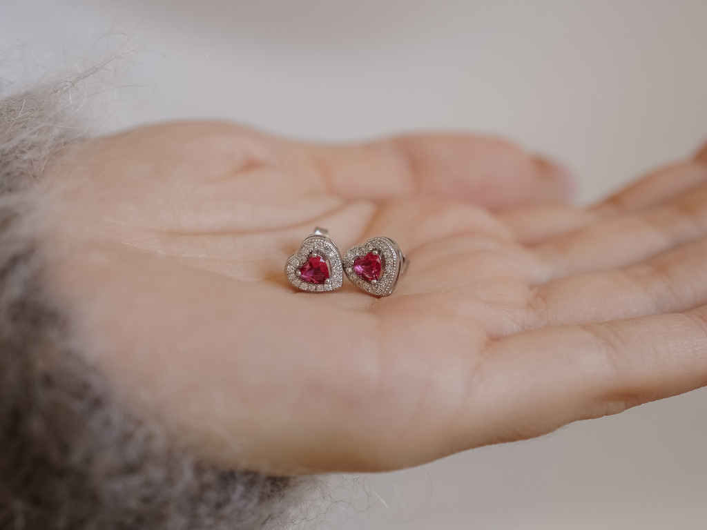 1655 Strieborné náušnice ČERVENÉ SRDIEČKO Ag 925; ≤1,5 g.