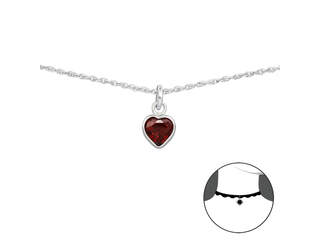 STRIEBORNÝ CHOKER NÁHRDELNÍK ČERVENÉ SRDCE