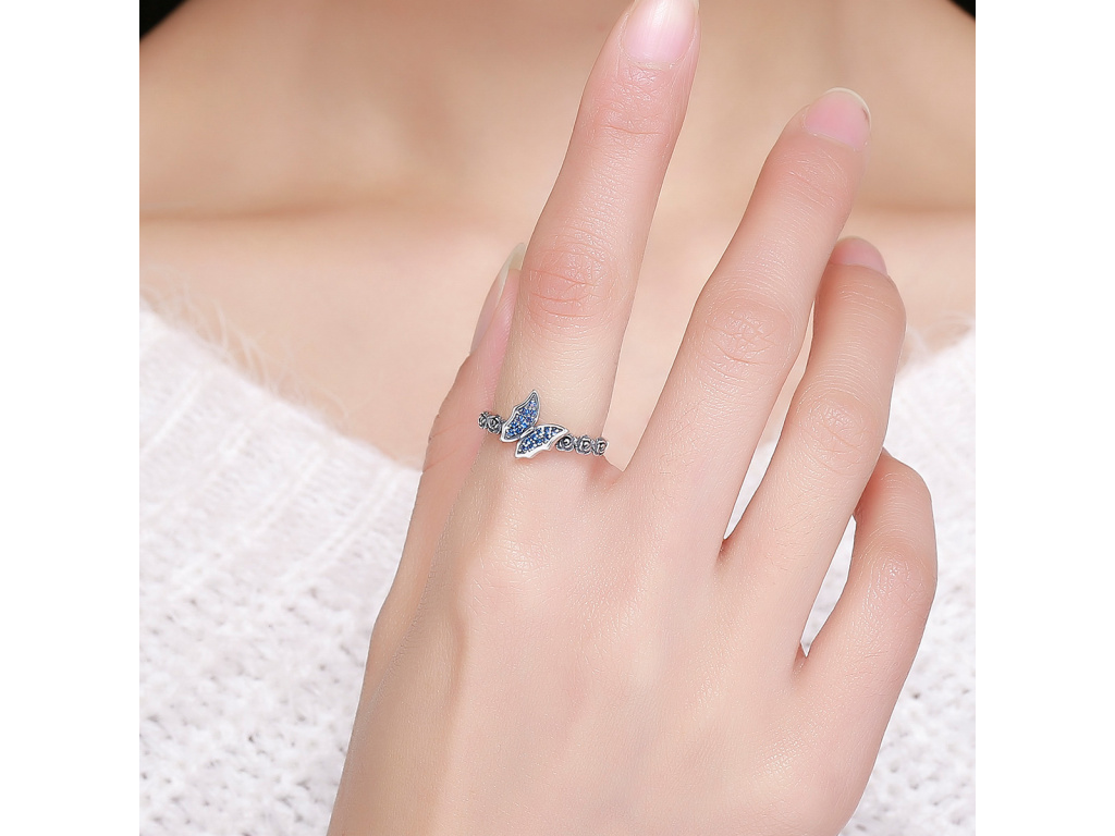 STRIEBORNÝ PRSTEN MODRÝ MOTÝL