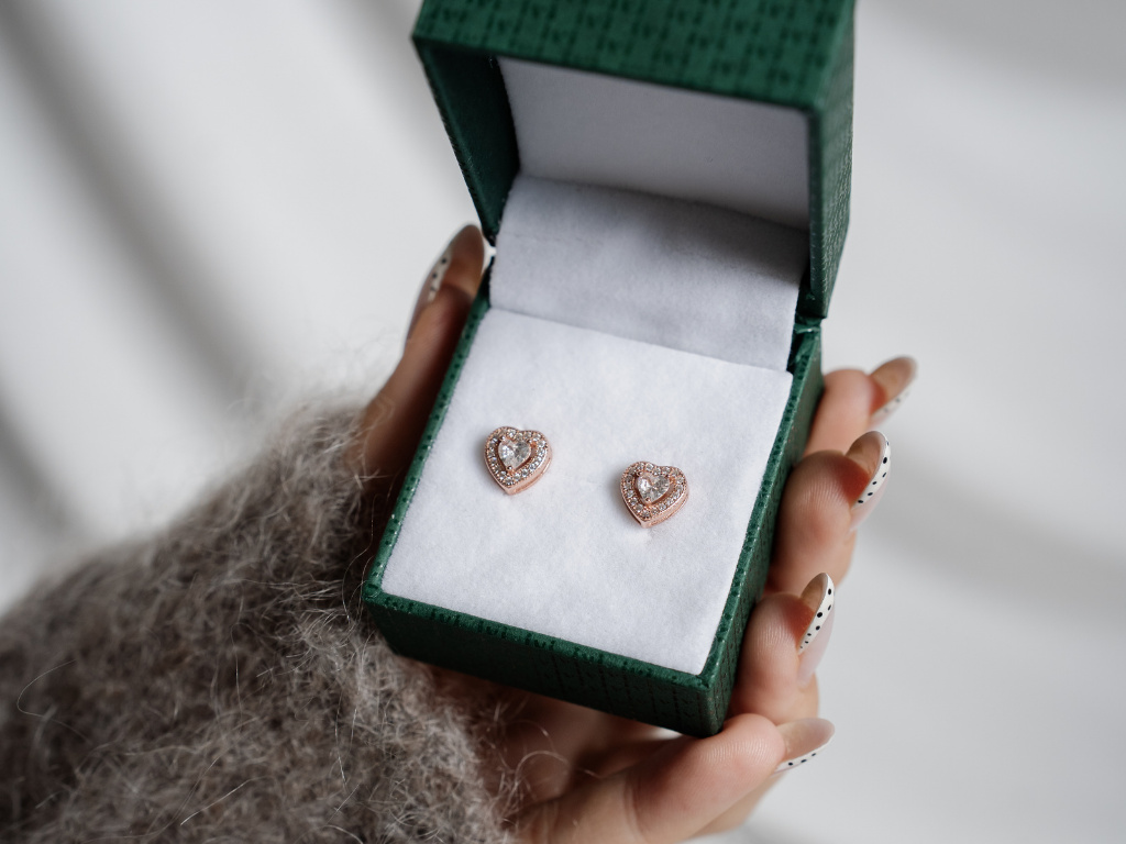STRIEBORNÉ NÁUŠNICE RUŽOVÉ SRDCE