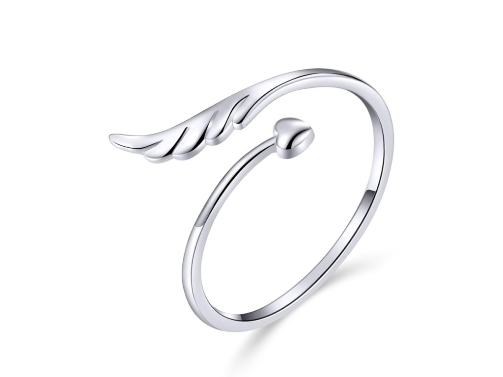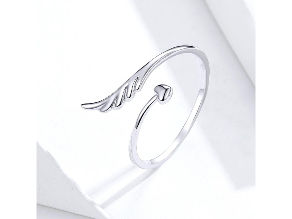 STRIEBORNÝ PRSTEŇ ANJELSKÉ KRÍDLO SO SRDIEČKOM ♥