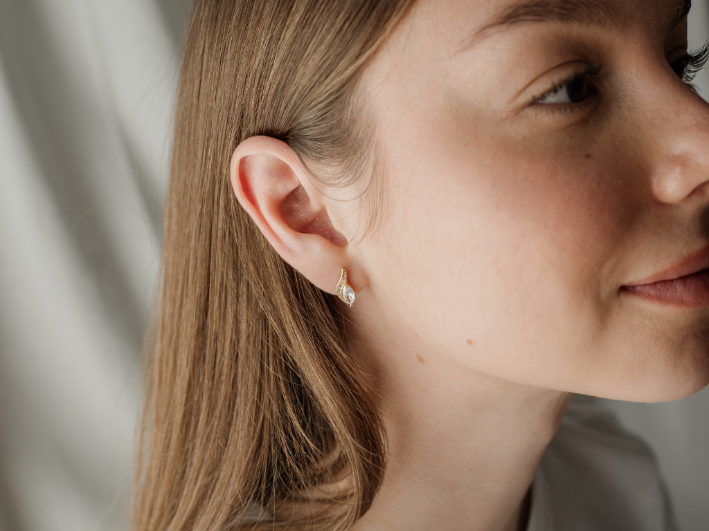 Náušnice so vsadenými čírymi zirkónmi.