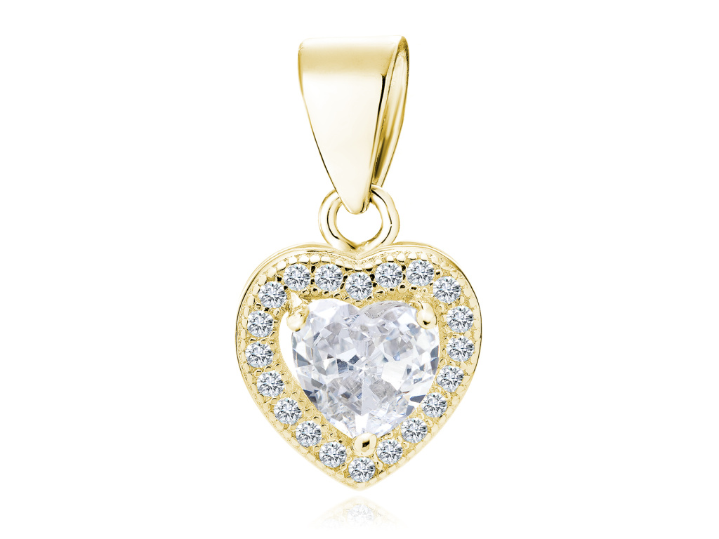 Pozlátené srdiečko so vsadenými čírymi zirkónmi.