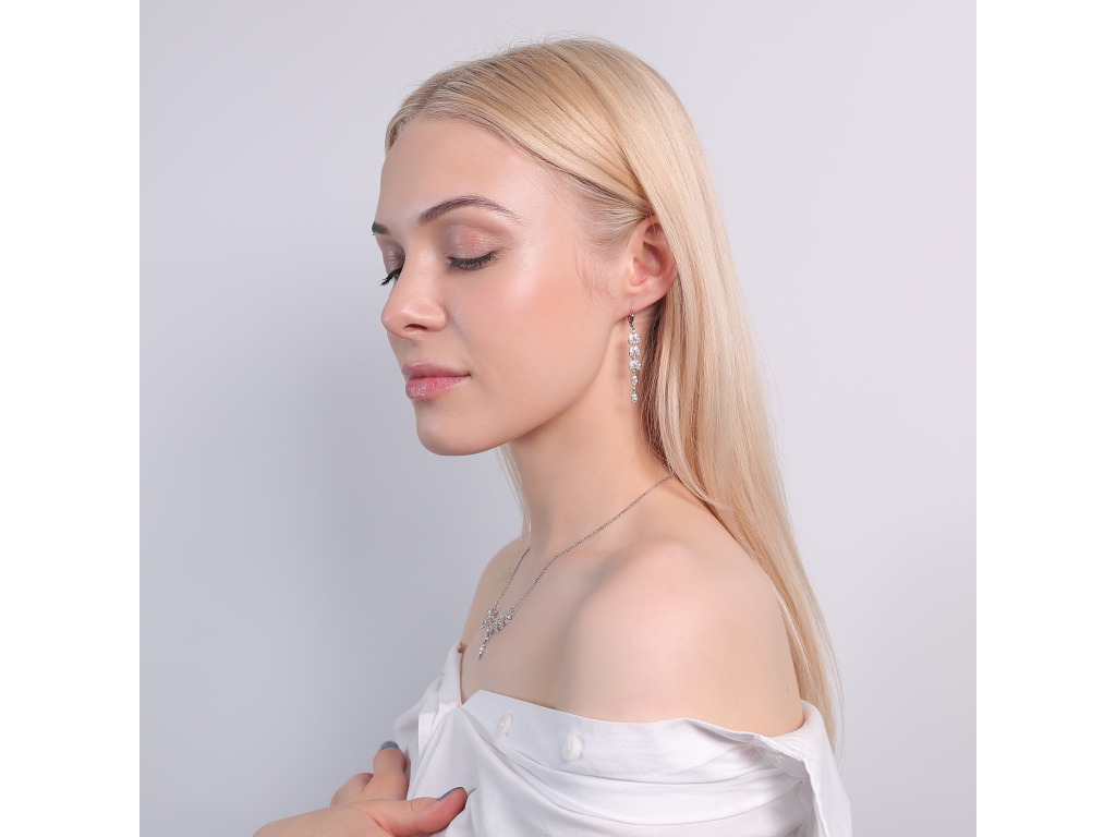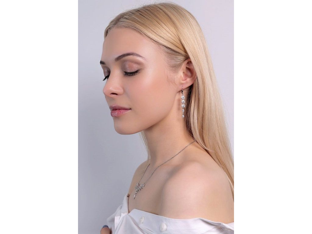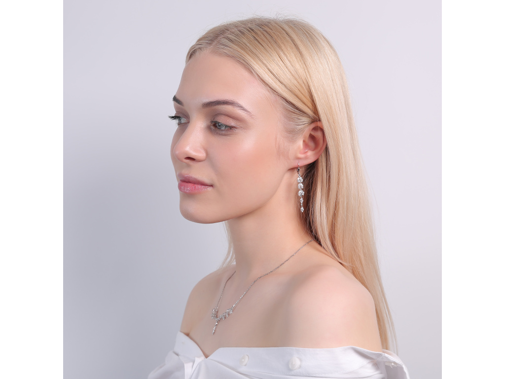 Luxusné strieborné náušnice vhodné pre nevestu alebo na inú slávnostnú príležitosť.