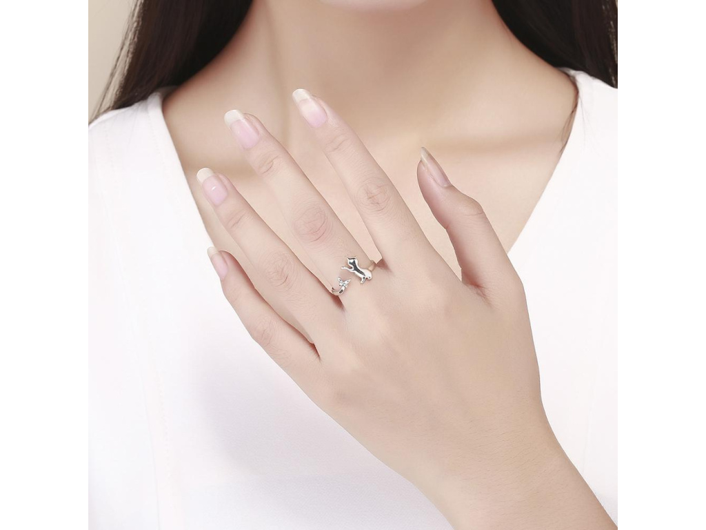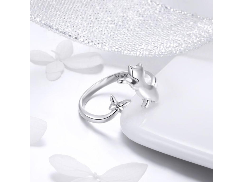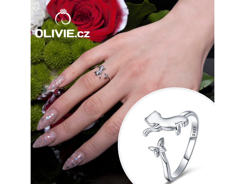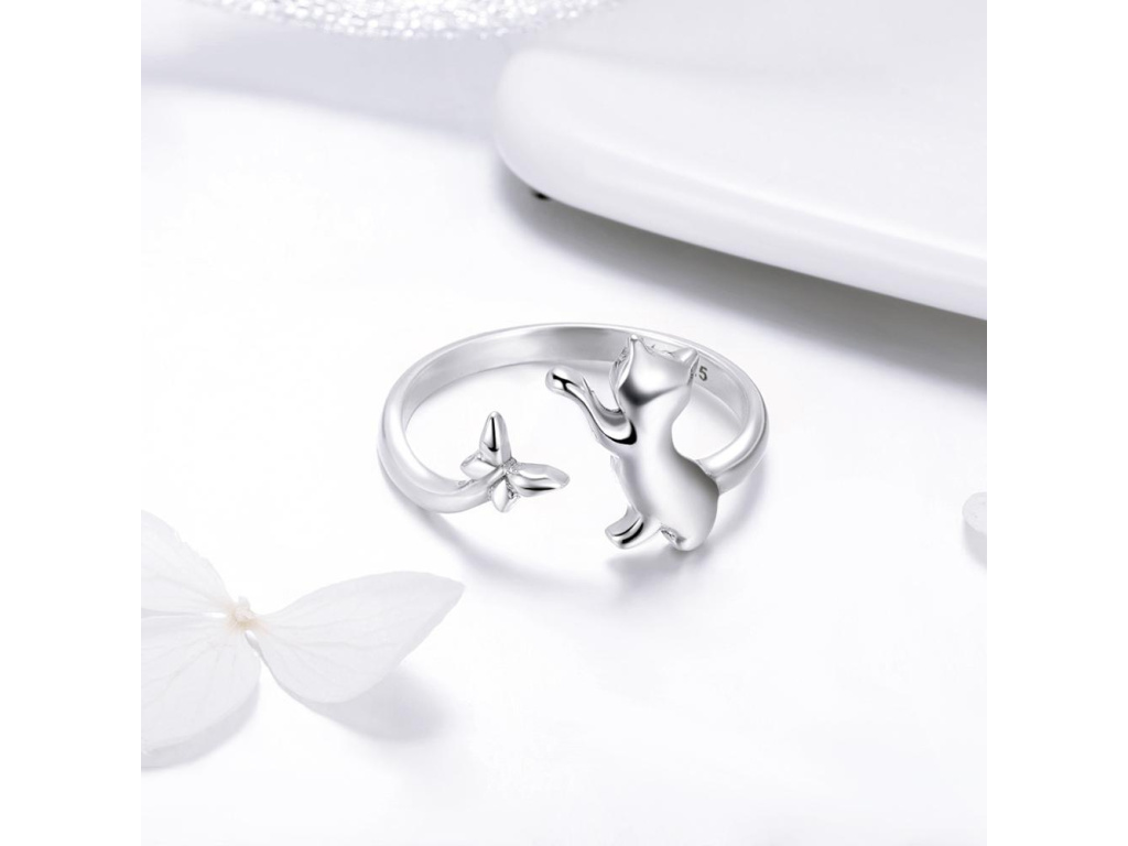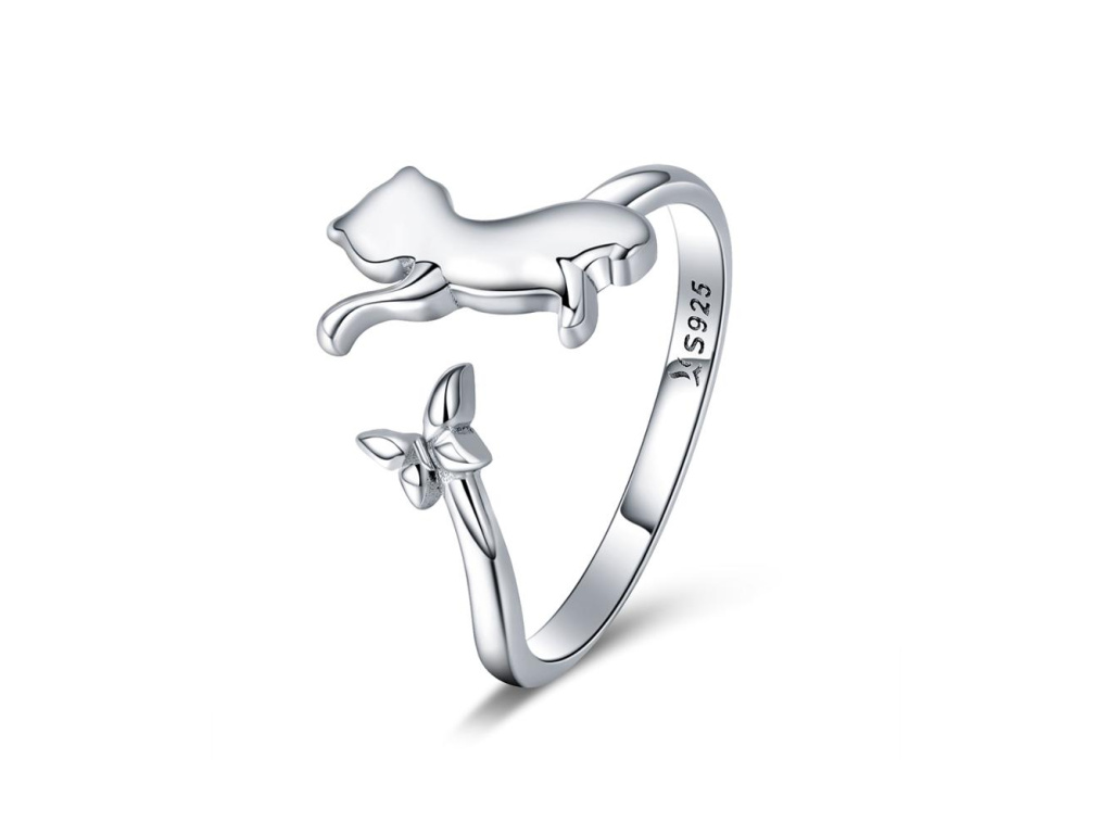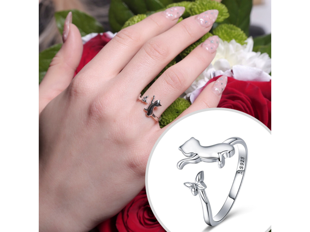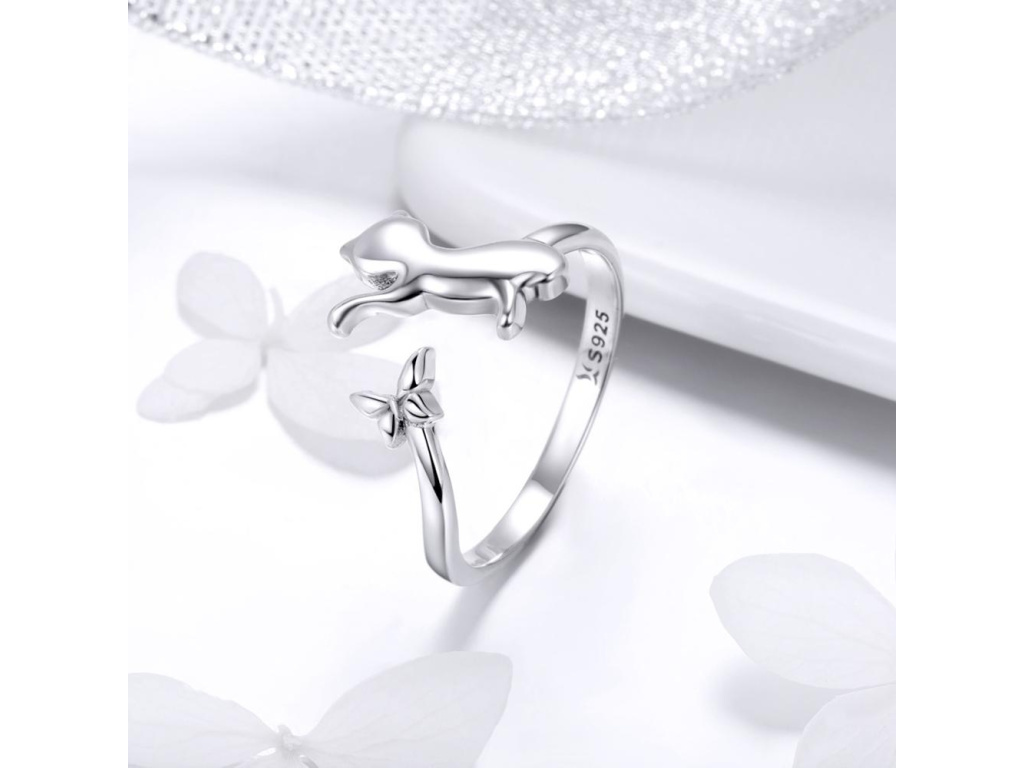 STRIEBORNÝ PRSTEŇ MAČKA S MOTÝLIKEM