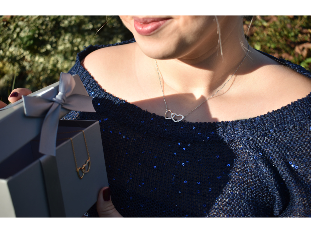 Dve prepojené srdiečka so zirkónmi ako symbol nerozlučnej lásky.