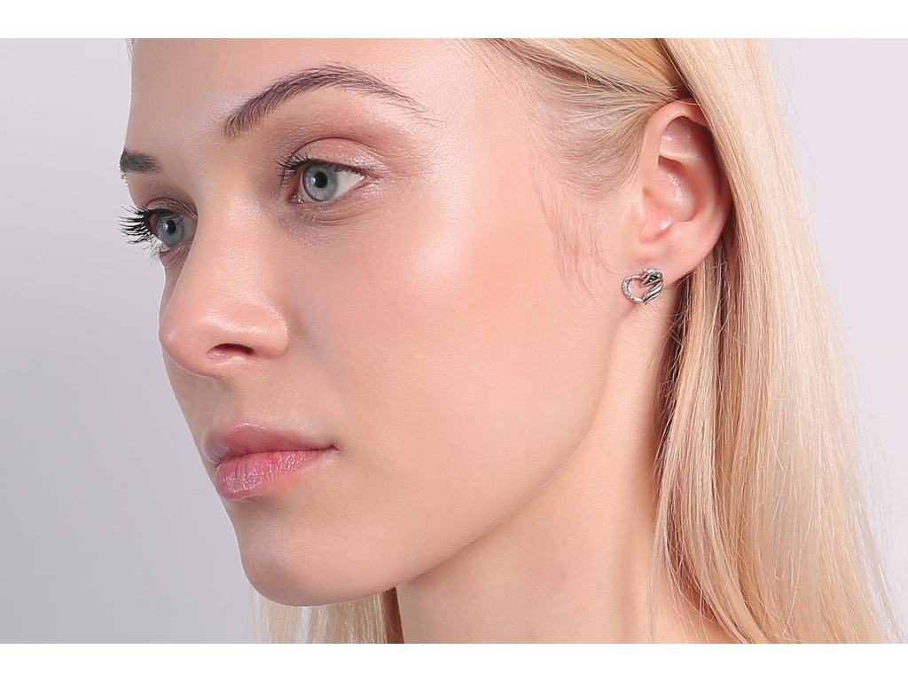 3749 Strieborné náušnice JEDNOROŽEC V SRDCI Ag 925; ≤2,1 g.