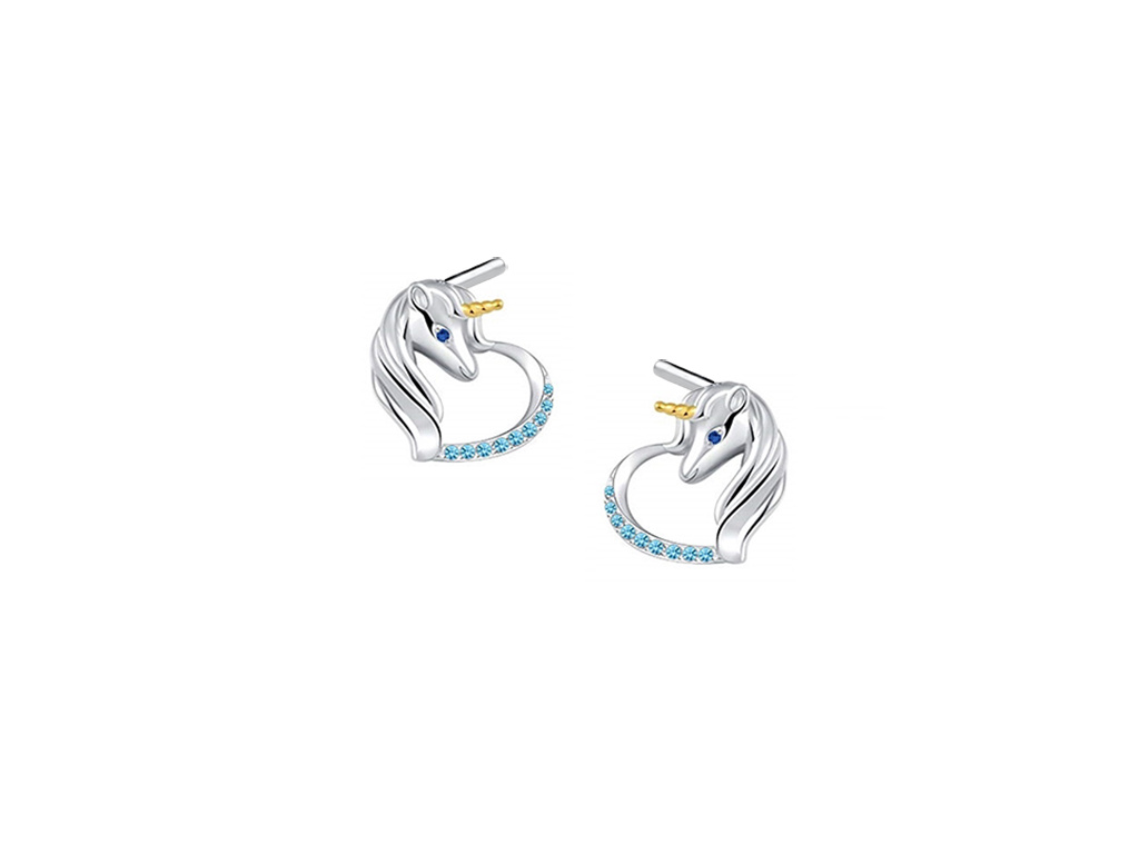 STRIEBORNÉ NÁUŠNICE JEDNOROŽEC V SRDCI