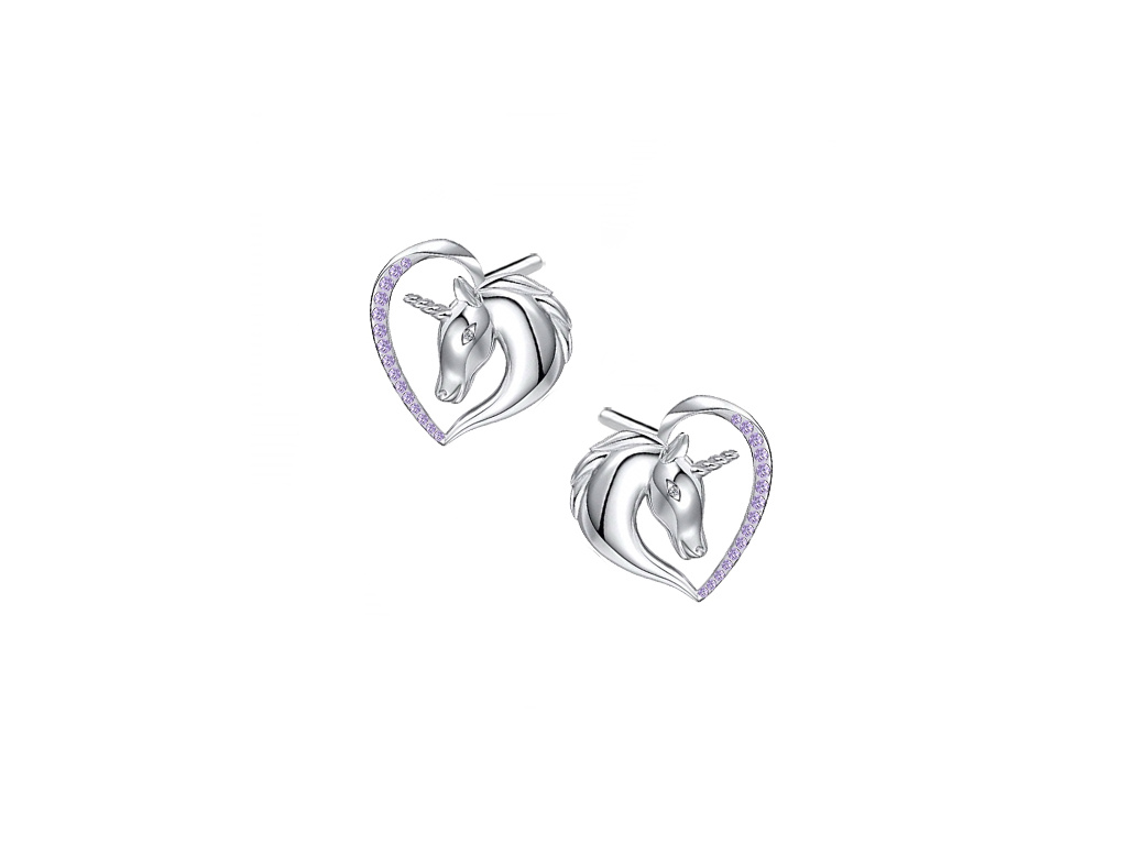 3761 Strieborné náušnice JEDNOROŽEC V SRDCI Ag 925; ≤1,9 g.