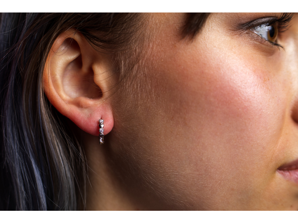 Obľúbené drobné krúžkové náušnice s čírymi zirkónmi.