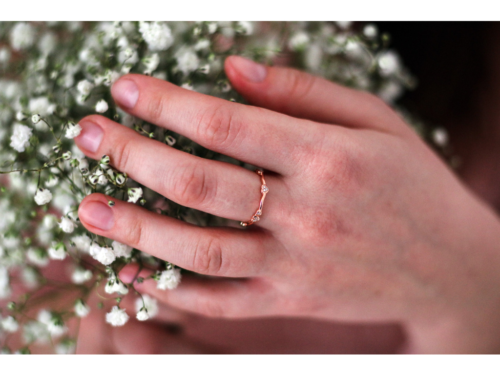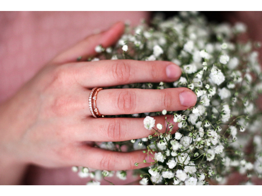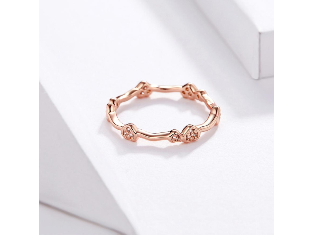 Rozkošný ružovo pozlátený prstienok so srdiečkami.