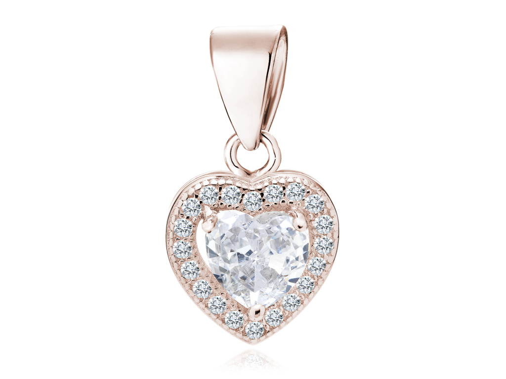 - Ružovo pozlátené srdiečko so vsadenými čírymi zirkónmi.