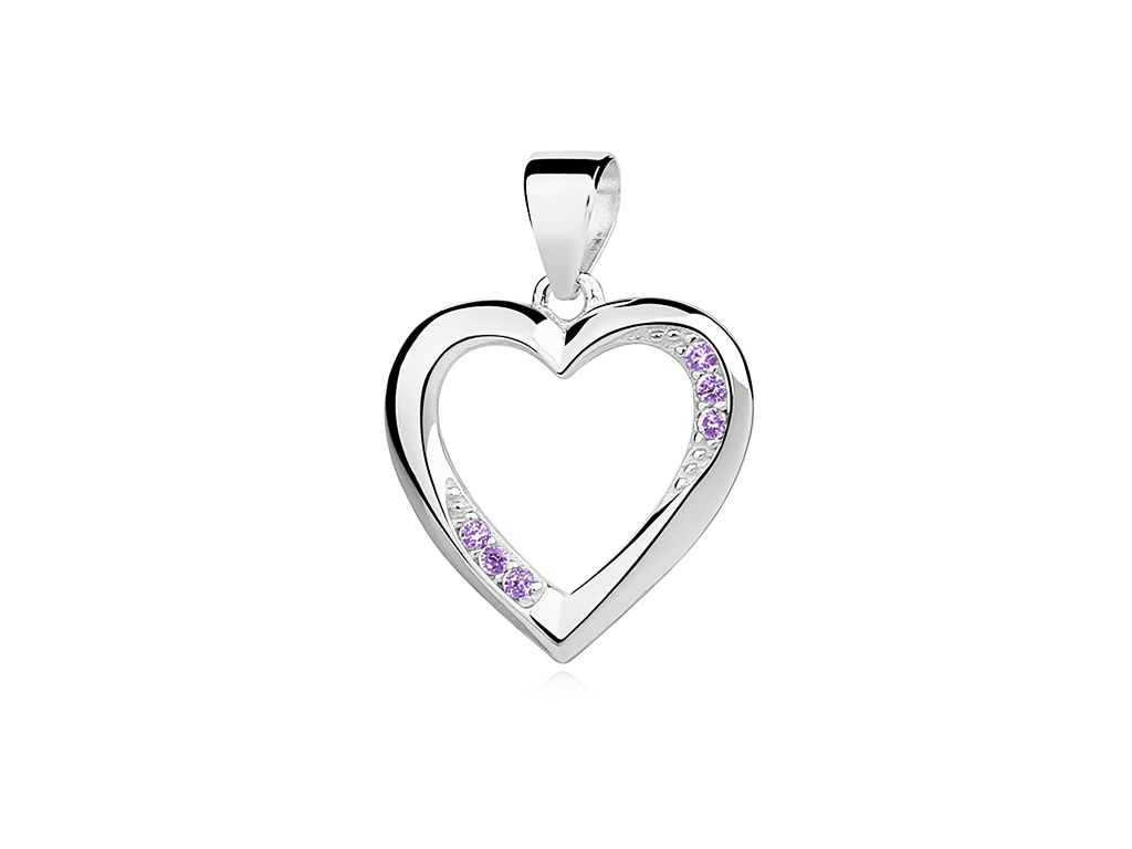 Nádherne vypracované strieborné srdiečko s fialovými zirkónmi.
