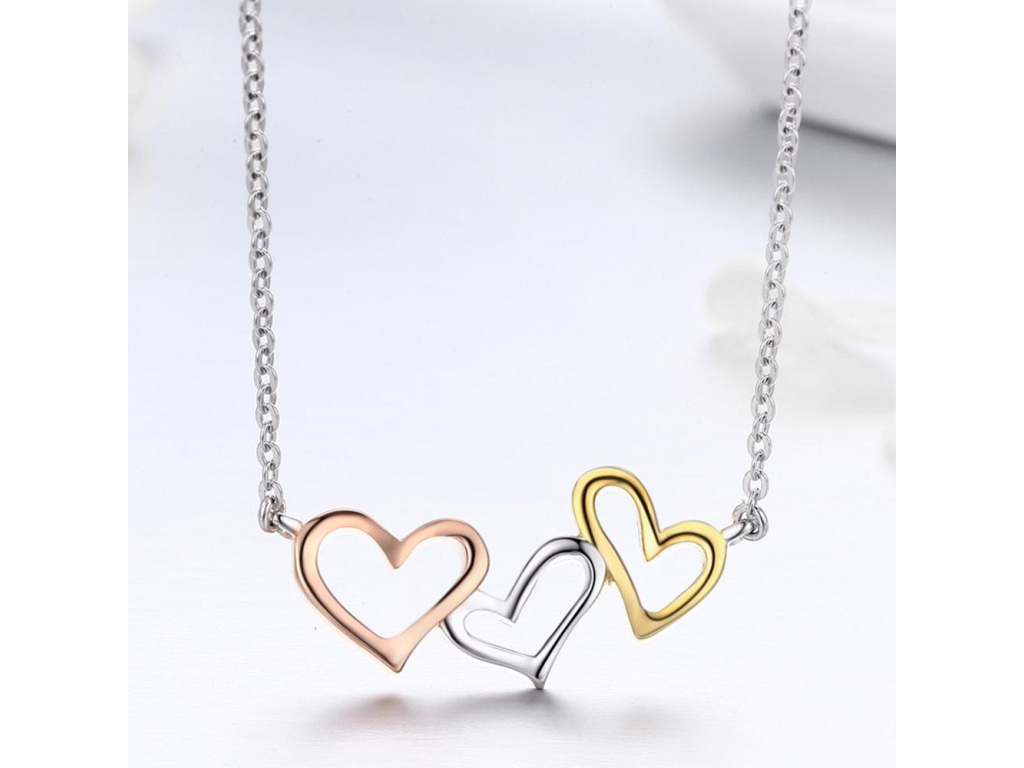 TRI SRDIEČKA STRIEBORNÝ NÁHRDELNÍK