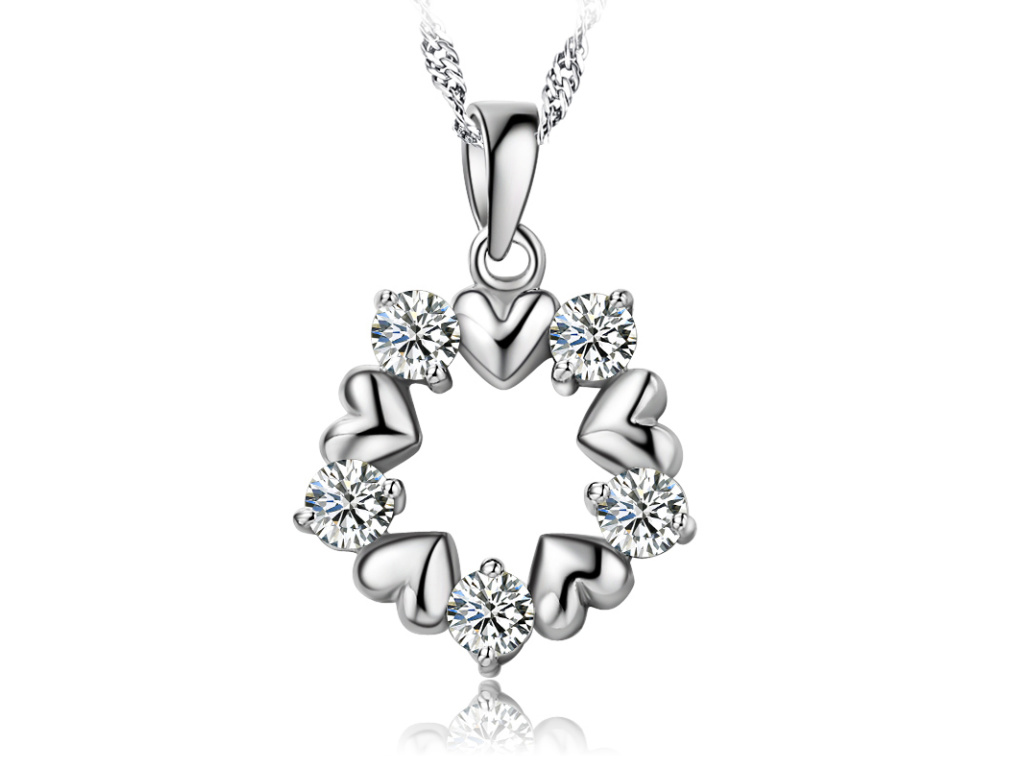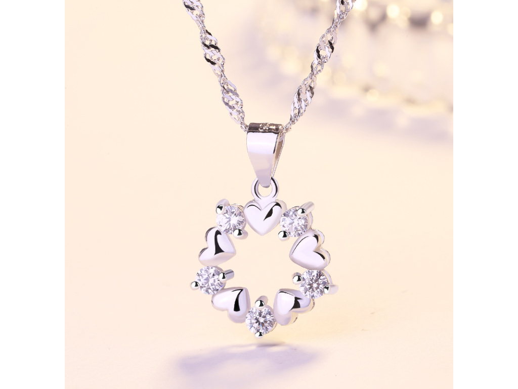 Päť strieborných srdiečok v kruhu, ktoré sú prekladané čírymi zirkónmi.