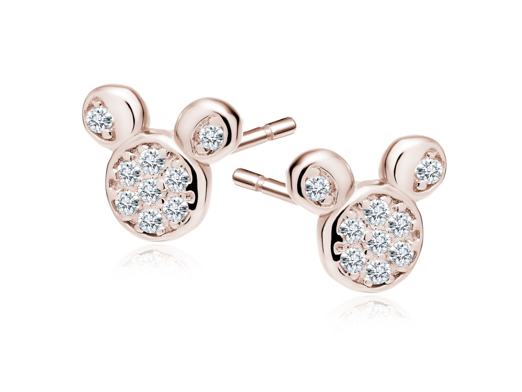Trblietavá ružovo pozlátená silueta myšky s čírymi zirkónmi