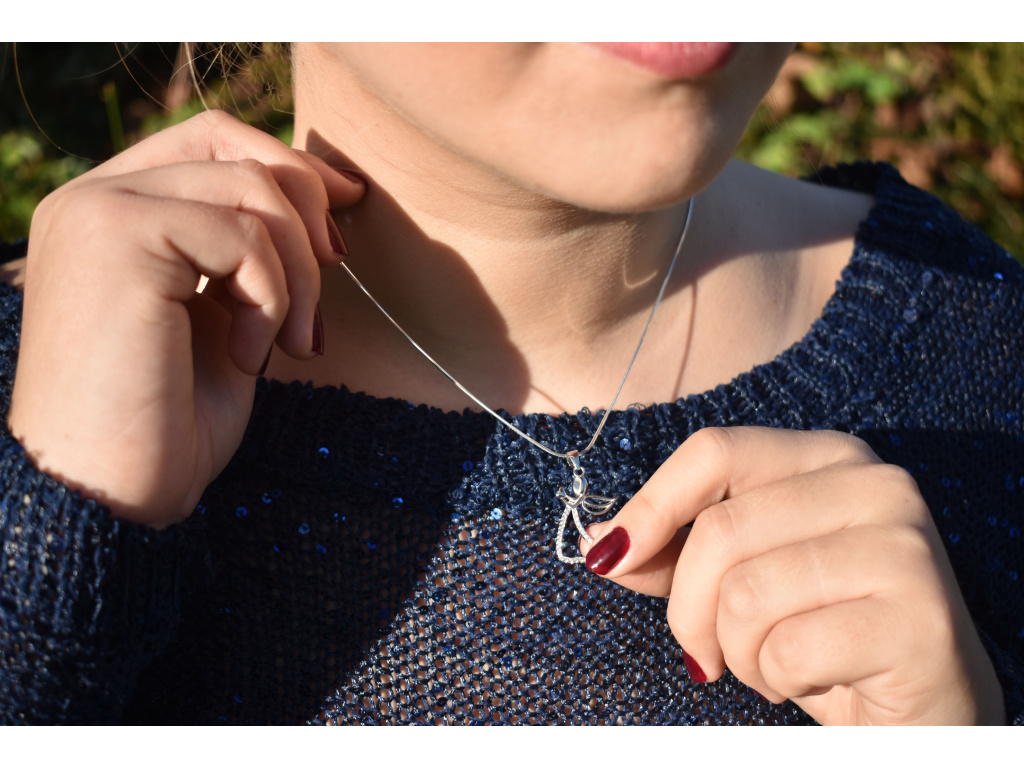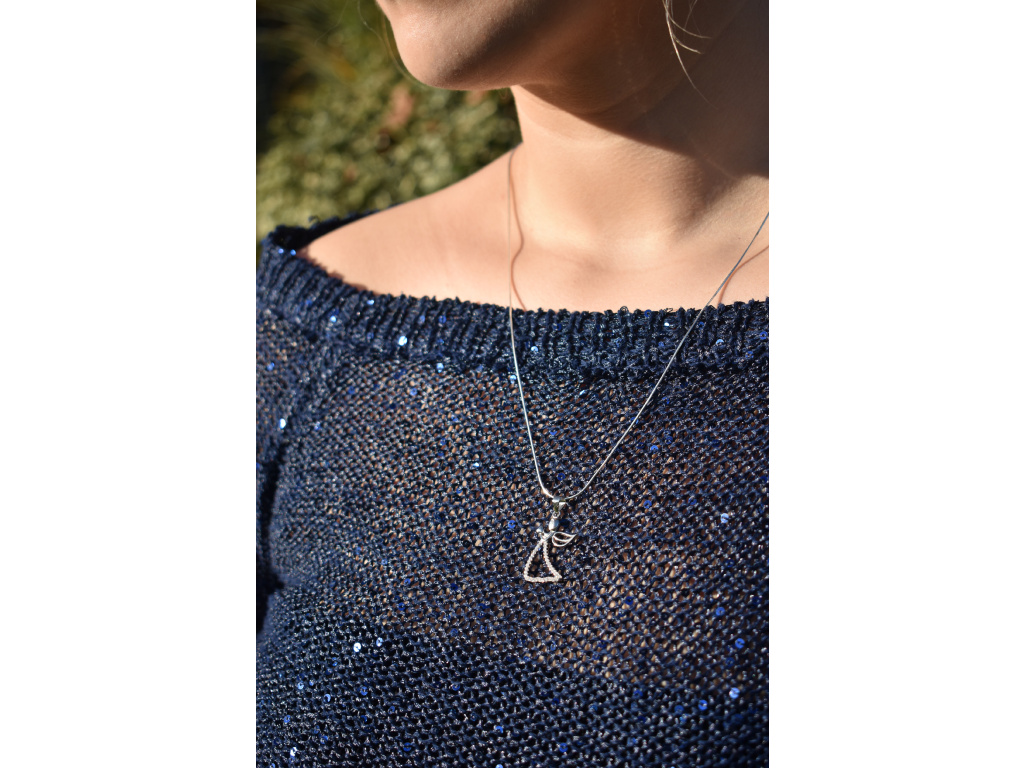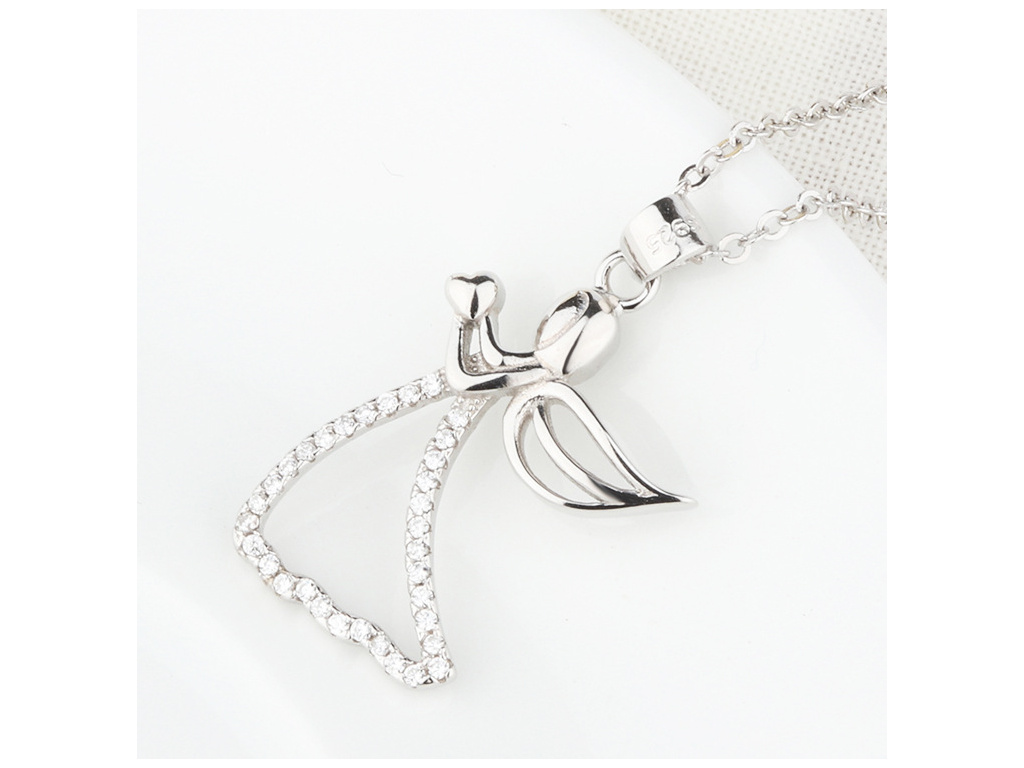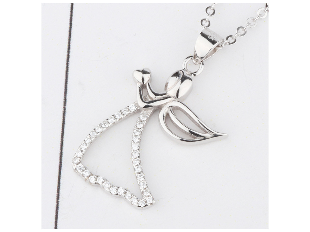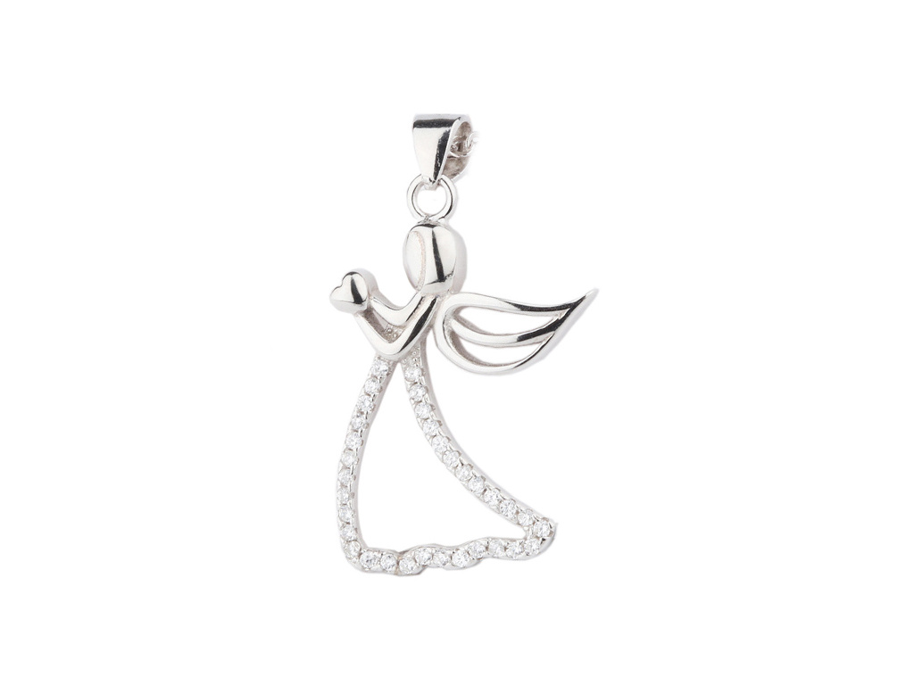 Strieborný anjel so srdiečkom a čírymi zirkónmi.