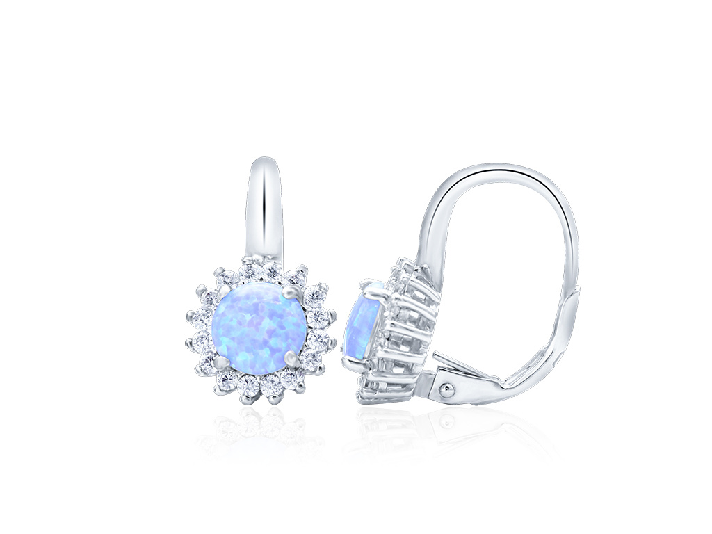 Striebro rýdzosti 925/1000 + vsadené číre zirkóny + modrý laboratórny opál.