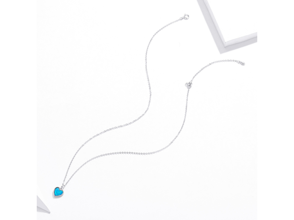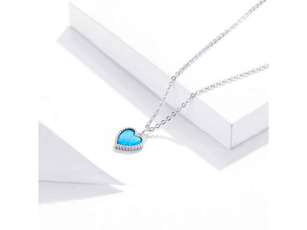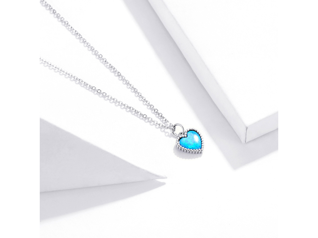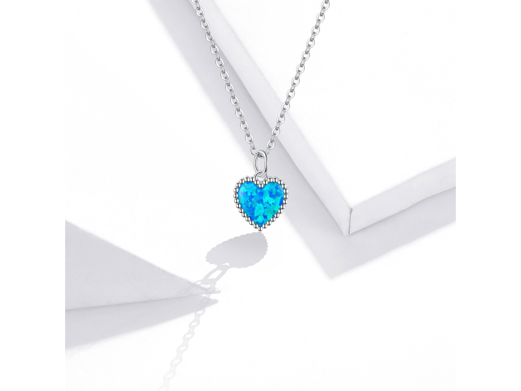 Strieborná retiazka s modrým opálovým srdiečkom.