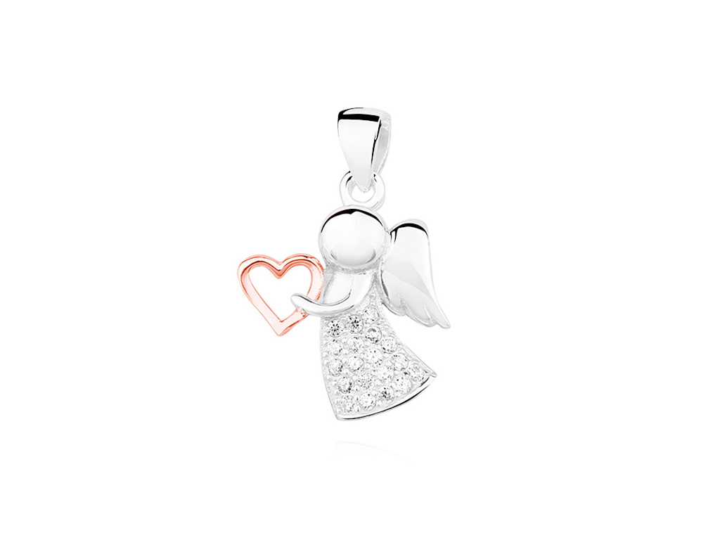 4501 Strieborný prívesok ANJEL s ružovým srdiečkom Ag 925; ≤1,2 g.