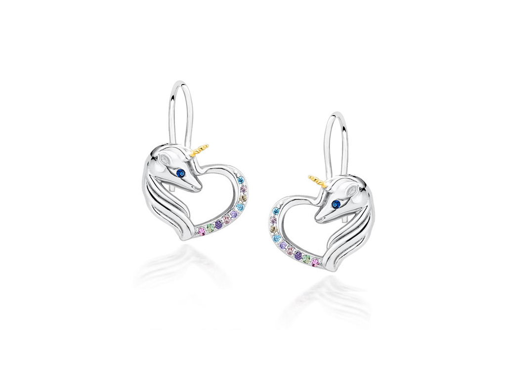STRIEBORNÉ NÁUŠNICE JEDNOROŽEC V SRDCI