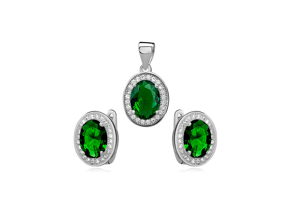 Prívesok aj náušnice obsahujú smaragdový zirkón.