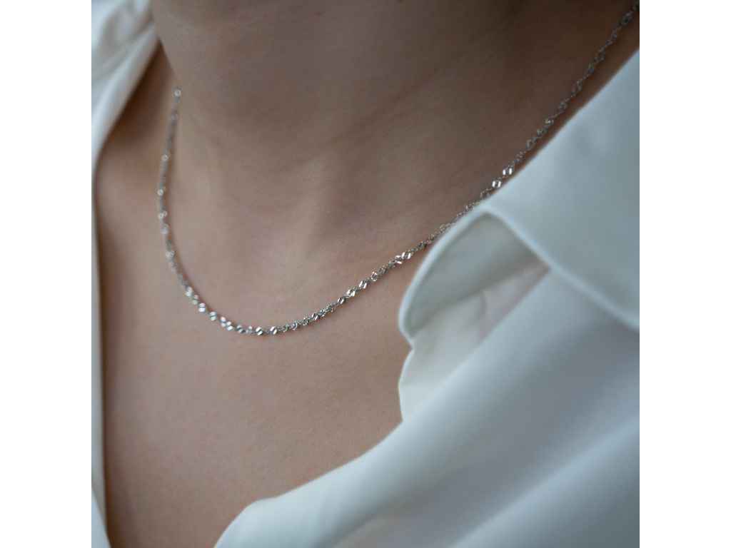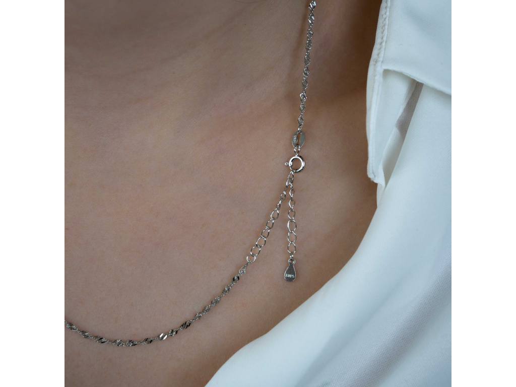 - Retiazka je vyrobená zo striebra a je označená puncov rýdzosti 925.