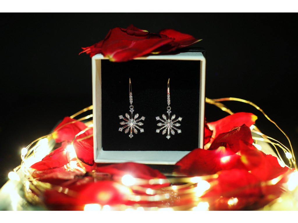 Náušnice so snehovou vločkou s dĺžkou 3,1 cm.