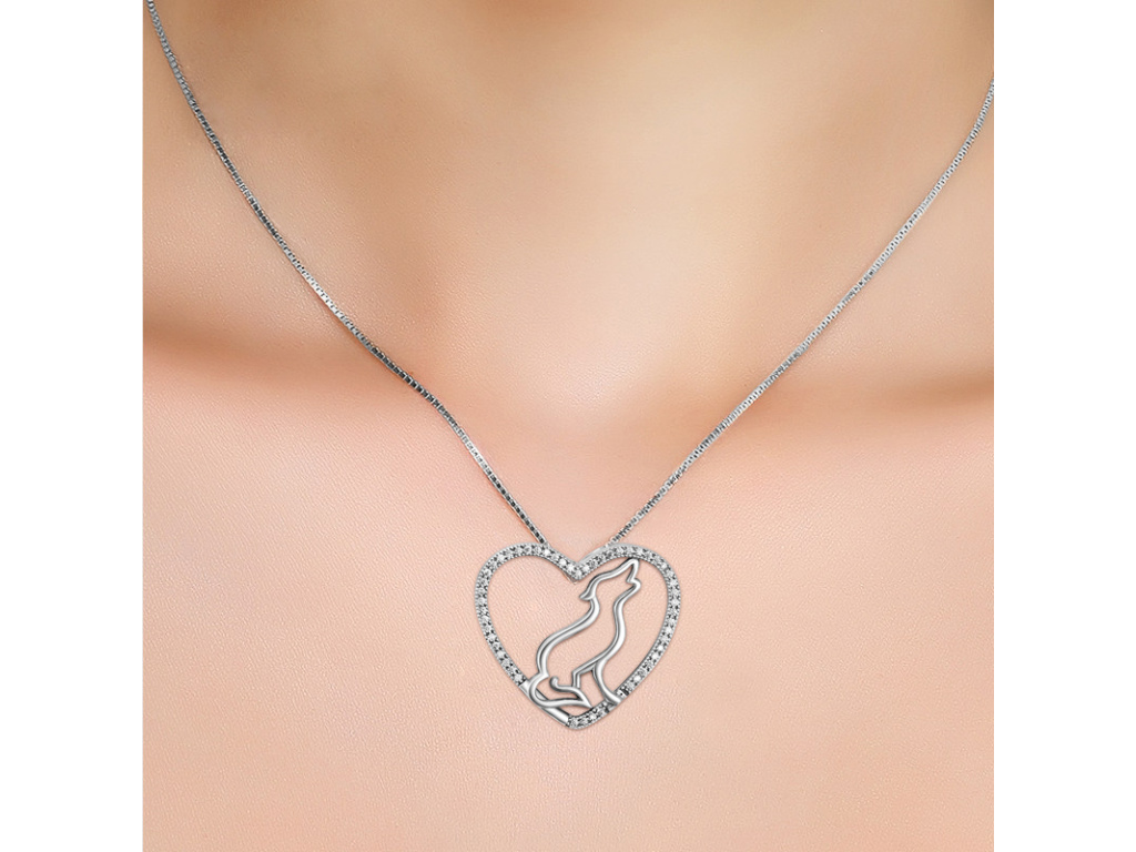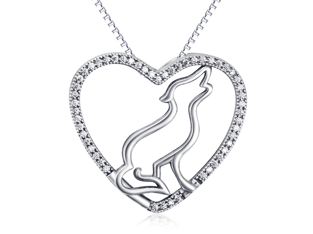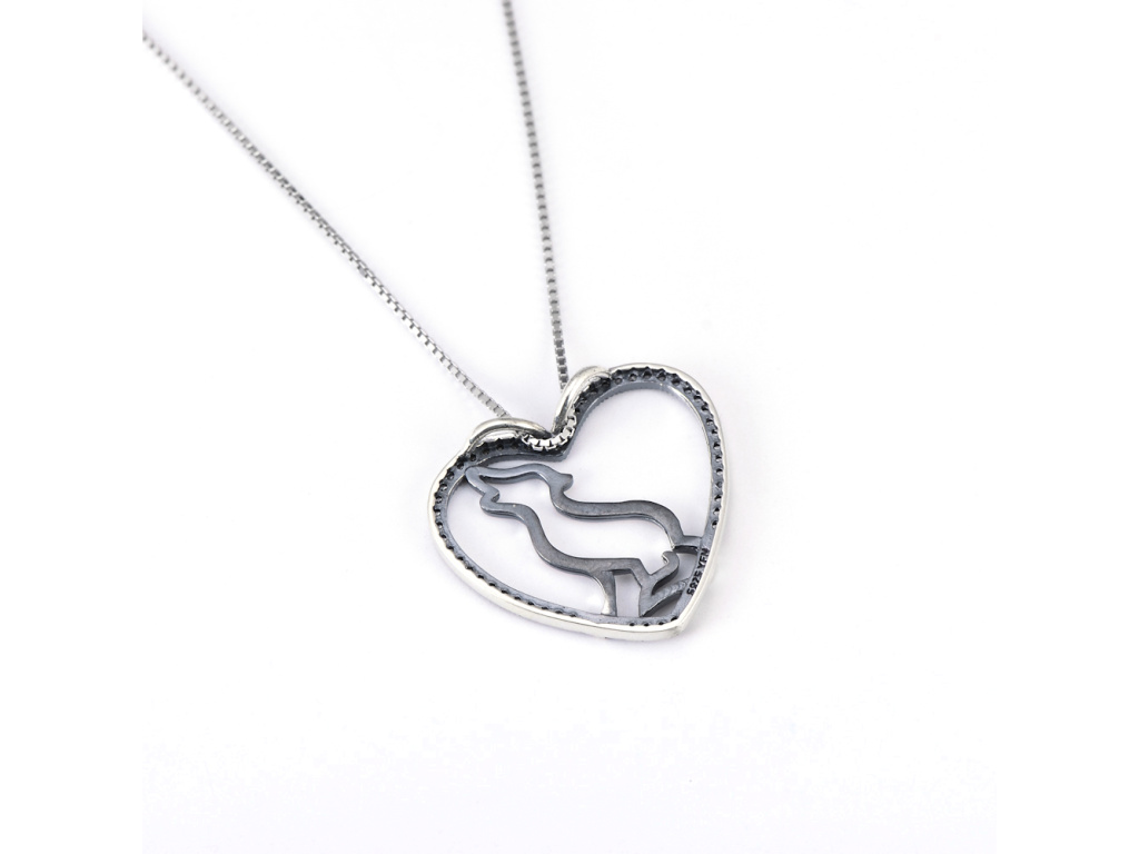 Vyjúci pes v srdiečku so zirkónmi.