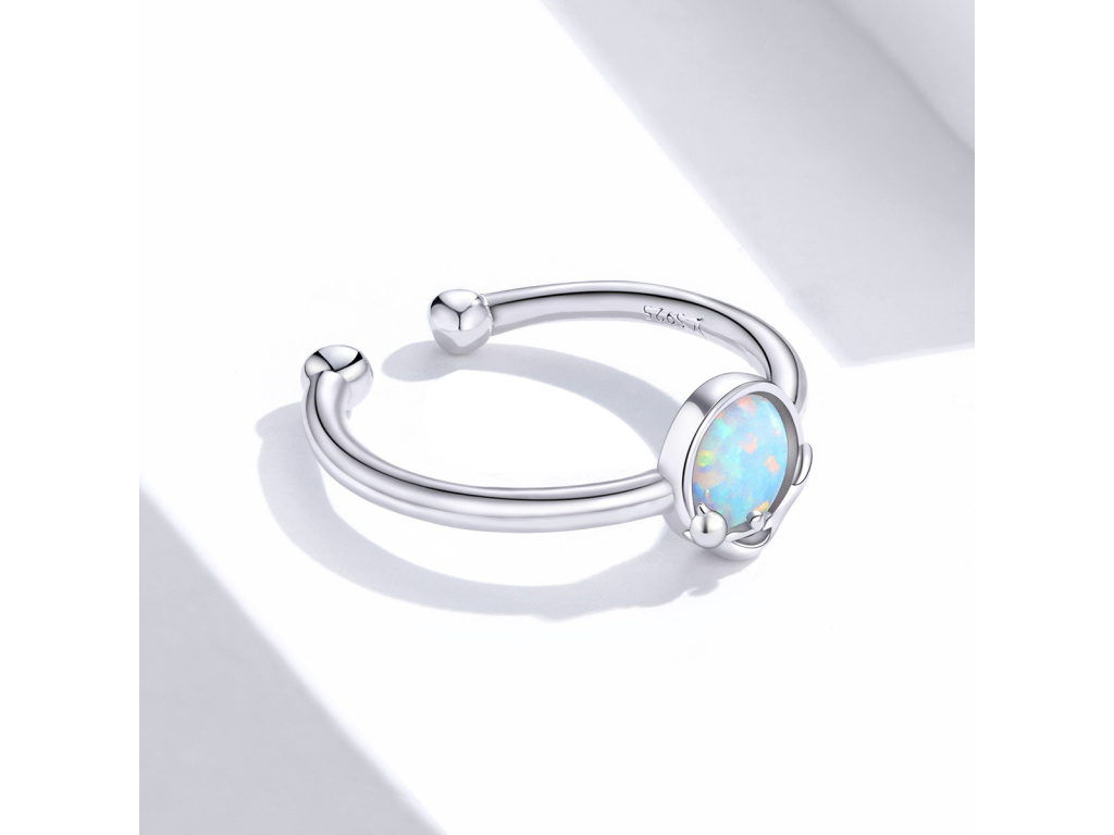 STRIEBORNÝ PRSTEN OPÁL S MAČKOU