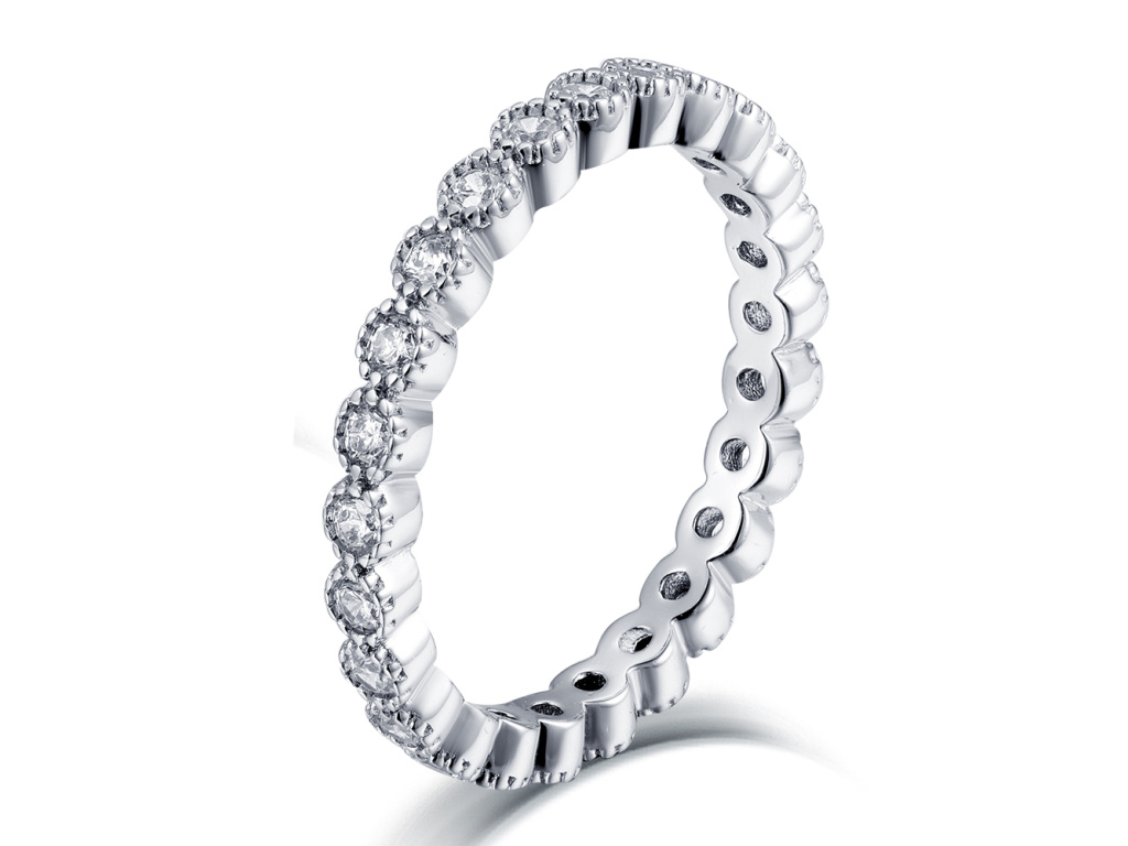 Číre zirkóny po celom obvode prsteňa.