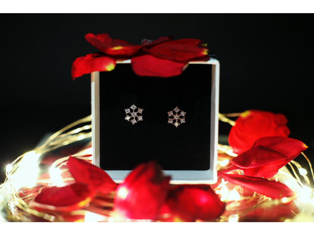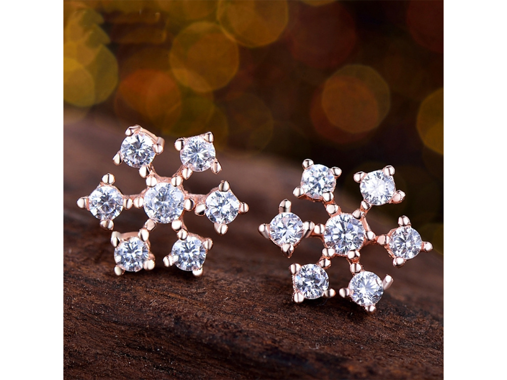 STRIEBORNÉ NÁUŠNICE RUŽOVÁ SNEHOVÁ VLOČKA