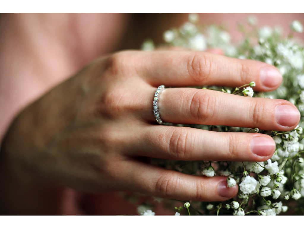 Číre zirkóny v kombinácii s bielymi opálmi.