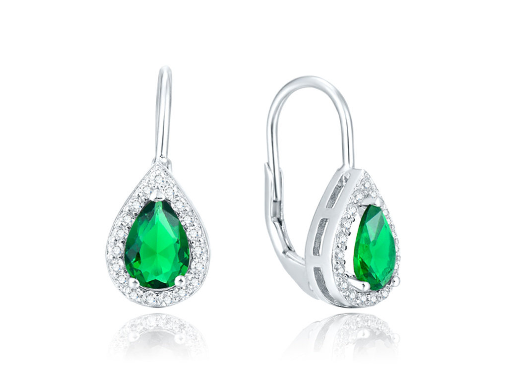 Strieborné náušnice so zeleným zirkónom a čírymi zirkónmi po obvode.