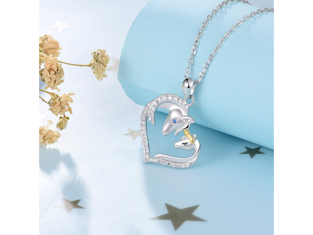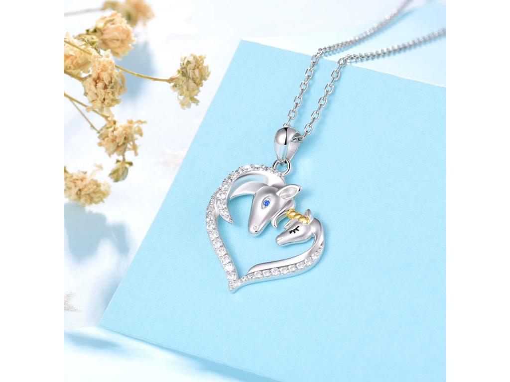 Romantický náhrdelník s motívom dvoch jednorožcov v srdiečku.