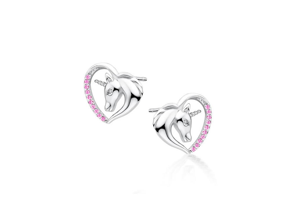 4934 Strieborné náušnice JEDNOROŽEC V SRDCI Ag 925; ≤1,9 g.