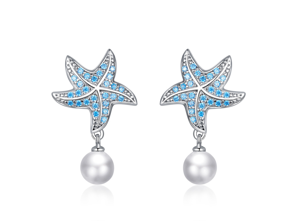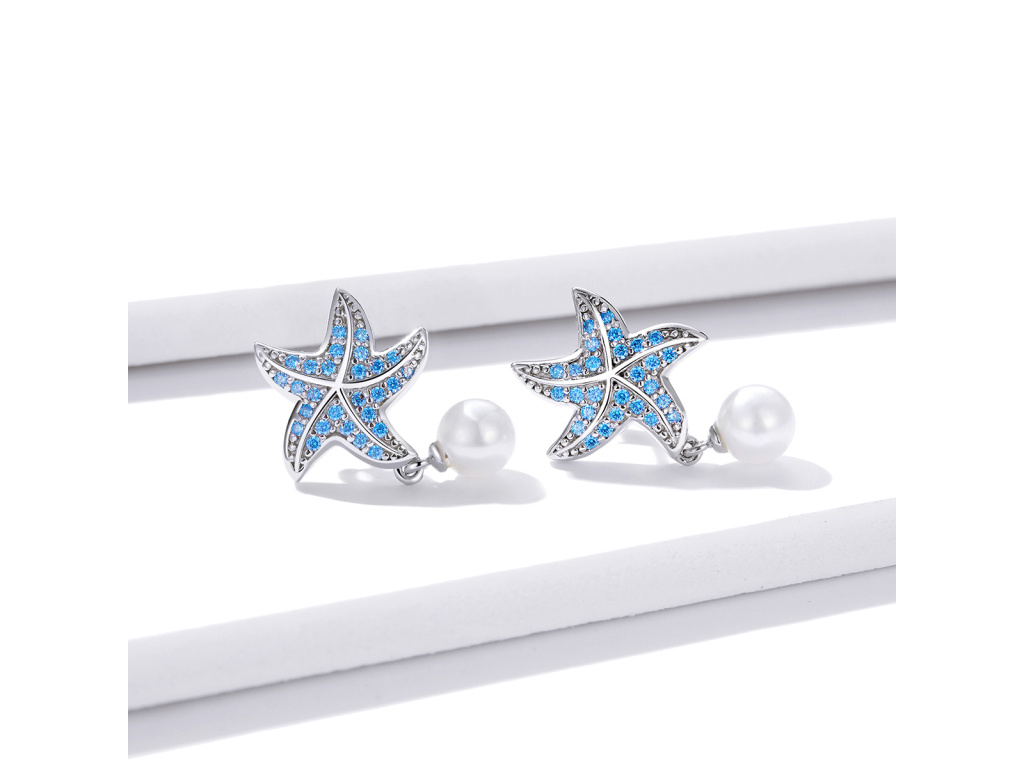 5014 Strieborné náušnice HVIEZDICA S PERLOU Ag 925; ≤2,5 g.