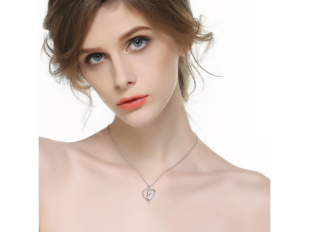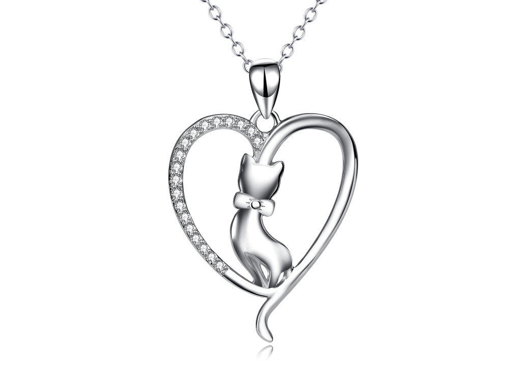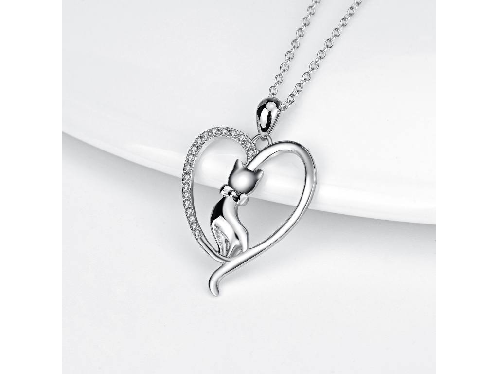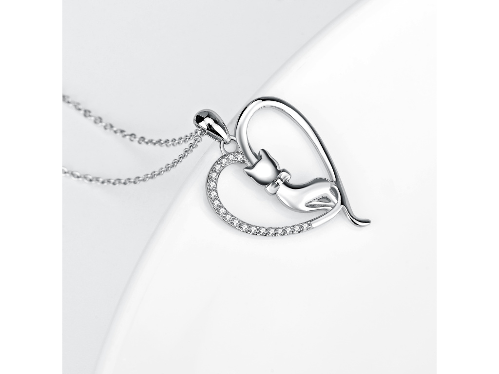 STRIEBORNÝ NÁHRDELNÍK MAČKA V SRDCI