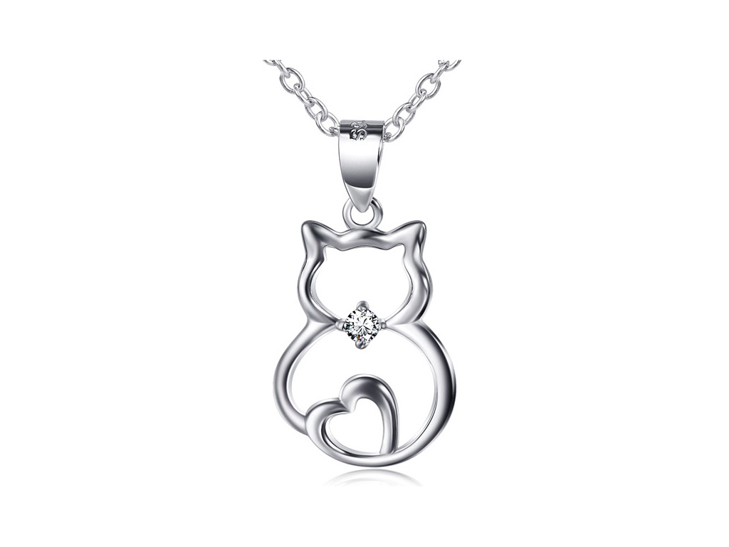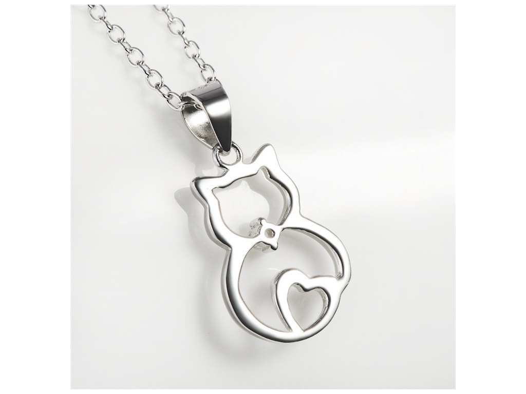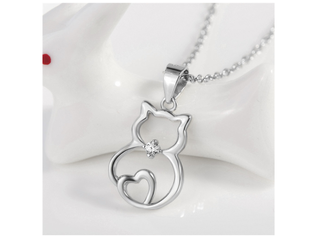 STRIEBORNÝ NÁHRDELNÍK MAČKA SO SRDIEČKOM