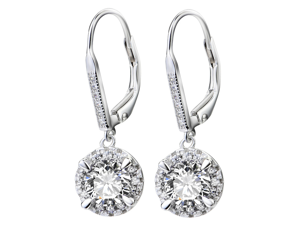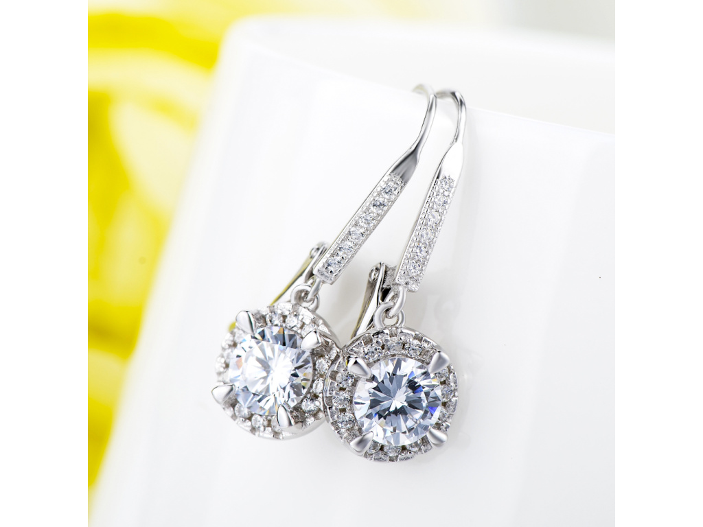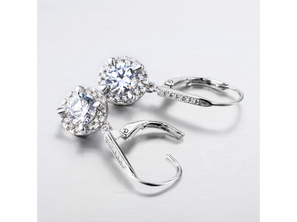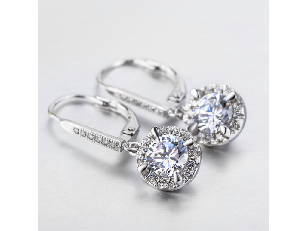 Trblietavé strieborné náušnice s okrúhlym čírym zirkónom.