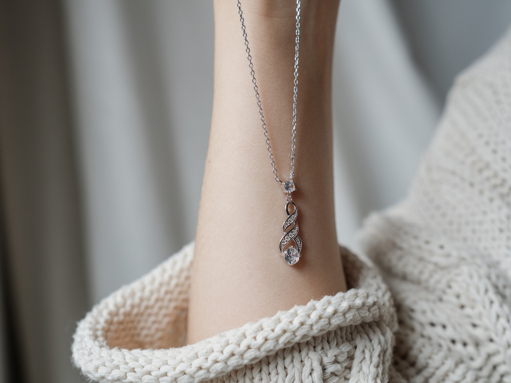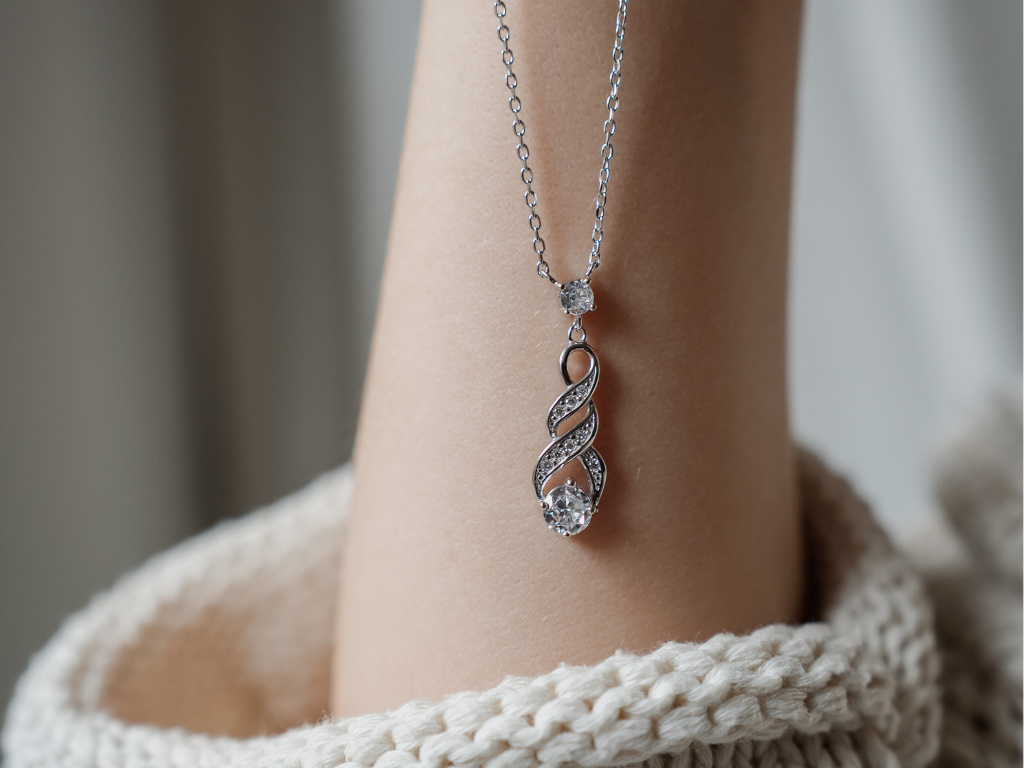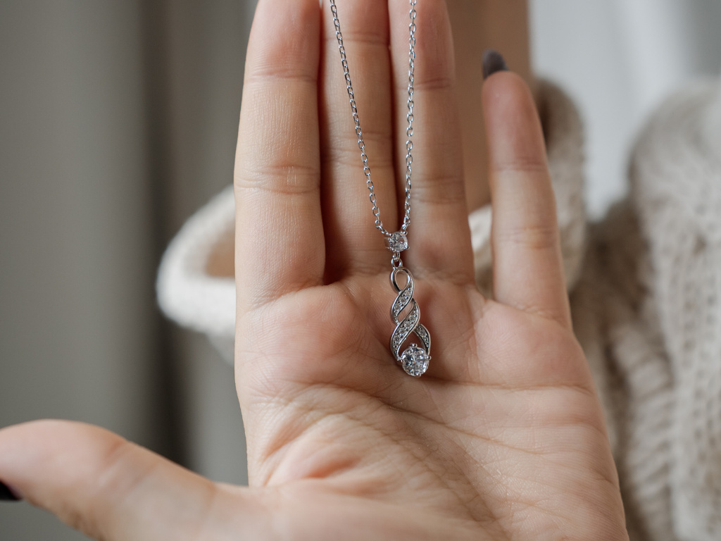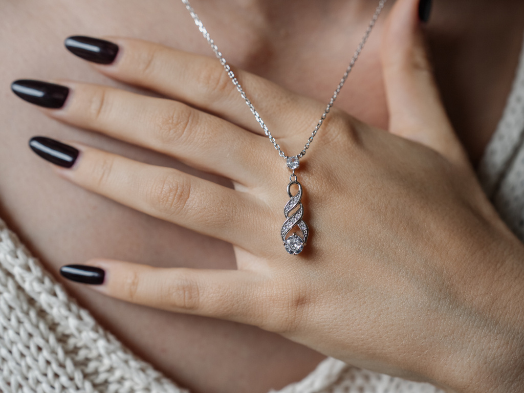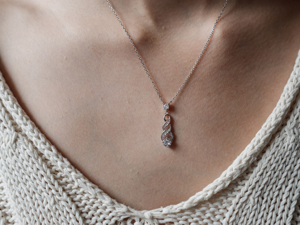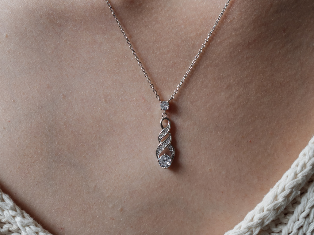 Strieborný náhrdelník vhodný pre nevestu, družičky alebo aj na iné slávnostné príležitosti.